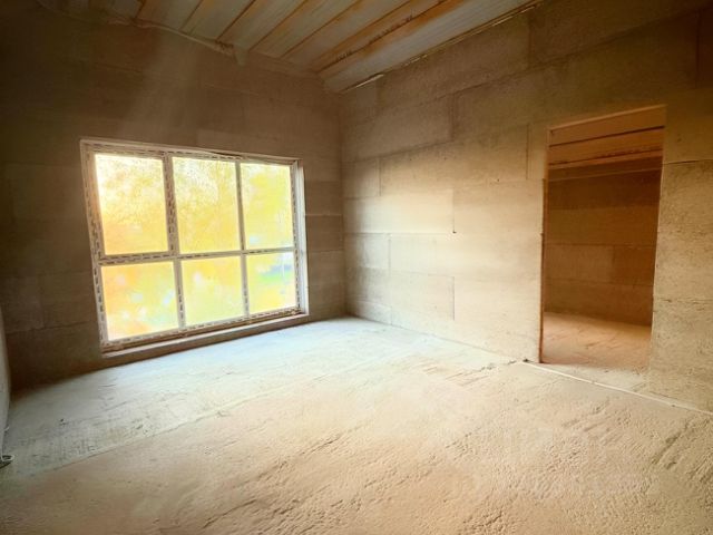 В доме на первом этаже располагается большая прихожая-терраса, 3 спальни, кухня-столовая, два санузла (одна с ванной), гостиная, второй выход с небольшой прихожей (встроенный шкаф).