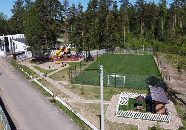 Посёлок огорожен хвойным и лиственным лесом, есть детская площадка, футбольное поле .